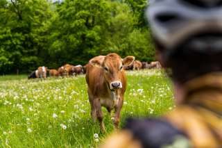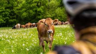 Le mucche proteggono i loro vitellini e possono diventare aggressive se si sentono minacciate. Pertanto, è necessario mantenere sempre una distanza sufficiente dagli animali. I piccoli non vanno toccati e i cani vanno tenuti al guinzaglio corto. I cancelli dei pascoli devono essere lasciati come sono stati trovati.