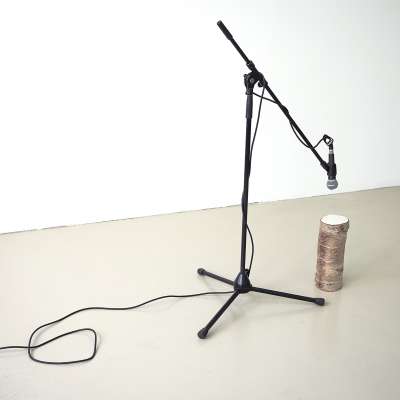 Diversi materiali e oggetti provenienti dal campo della musica, come strumenti, utensili e microfoni, fanno riferimento al mondo acustico. Questi oggetti sono utilizzati anche come materiale plastico-visivo, creando una percezione simultanea di presenza ottica e acustica.