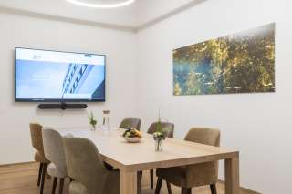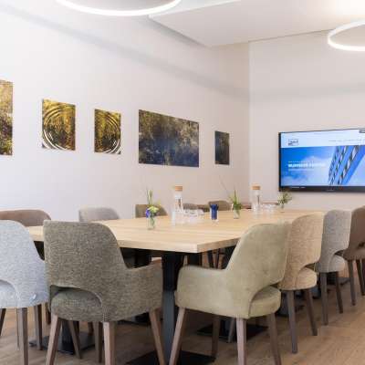 Il business center, situato in posizione centrale, offre sale riunioni e conferenze esclusive, moderne e completamente attrezzate, inserite in un'architettura unica ecologica, sostenibile ed efficiente dal punto di vista energetico.