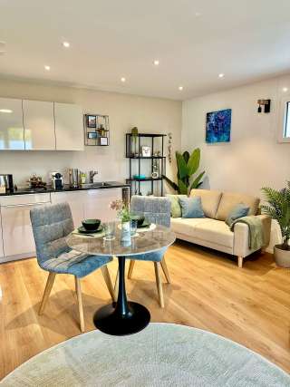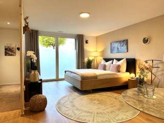 L'Alpenglanz Deluxe Studio di Schaan offre 43 m² di comfort abitativo moderno per una o due persone. Il monolocale con ingresso indipendente vanta un design elegante, un'attenta cura dei dettagli e una posizione tranquilla ai piedi delle Tre Sorelle.