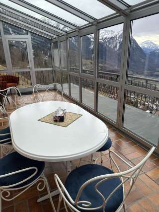 La tranquilla posizione in montagna offre una vista panoramica sulla valle del Reno e sulle montagne circostanti. Dalla terrazza si gode di un ampio panorama durante il giorno e, la sera, di un suggestivo mare di luci. Un luogo che invita a fermarsi e a rilassarsi.