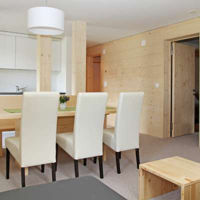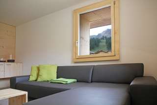 L'appartamento dispone di una camera matrimoniale e di una camera con un letto matrimoniale e un letto a castello, ideale per famiglie fino a 6 persone. L'appartamento dispone di un ampio soggiorno/sala da pranzo, un grande bagno con WC e doccia, un guardaroba, un balcone e un'area salotto. L'appartamento è stato arredato in un moderno stile alpino e crea un'accogliente atmosfera di vacanza. Un ampio ripostiglio per gli sci, le altre attrezzature sportive e i vestiti offre un pratico extra.