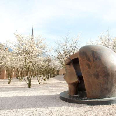 La scultura illustra sia il modello formale della forma interna ed esterna, sia il motivo di base della forma umana, che è protetta e allo stesso tempo protettiva. La scultura è composta da tre sculture parziali montate su un basamento circolare. Due conchiglie frammentate, sfalsate l'una rispetto all'altra, formano il rifugio aperto; una terza parte, più piccola e ovviamente figurativa, può essere letta come un torso femminile in piedi. Le forme del riparo hanno dimensioni e contorni diversi. La figura si trova nell'apertura dello spazio protettivo e il suo lato preferito mostra alcuni motivi femminili. L'interpretazione di una donna materna è ovvia, anche se Moore ha rinunciato all'incarnazione di un bambino e solo il movimento ondeggiante della grande piega diagonale davanti al corpo accenna al tema ricorrente della madre e del bambino.