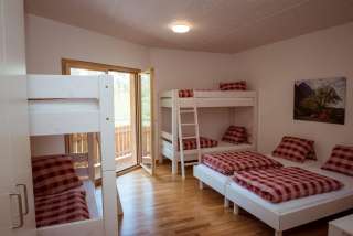 Il nuovo edificio è dotato di bagno e WC nel corridoio, cucina e salotto, nonché di una camera doppia, una camera a 4 letti e una a 6 letti. Le camere hanno prezzi ragionevoli e consentono ai viaggiatori economici di godere del comfort di una sistemazione accogliente. La biancheria da letto è inclusa nel prezzo della camera.