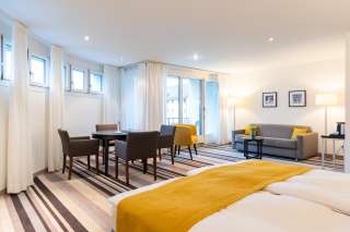 Le camere standard dell'edificio principale sono decorate in stile alpino e sono classificate come 3 stelle. La dependance, che ospita moderne camere e suite a 4 stelle, si trova in una posizione particolarmente tranquilla. Gli ospiti possono accedere gratuitamente al centro fitness nell'edificio adiacente, dotato delle più moderne attrezzature.