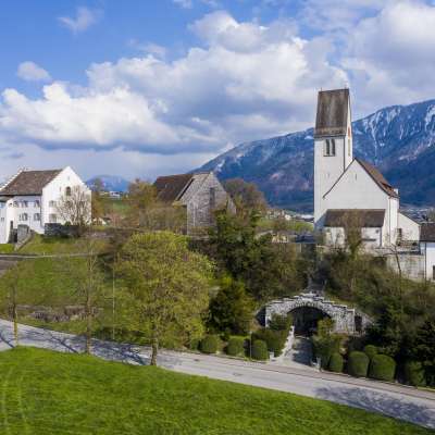 La collina è stata probabilmente abitata per 4000 anni e una chiesa potrebbe sorgere già nel VI secolo. La nuova chiesa parrocchiale in stile gotico fu consacrata nel 1481. La canonica risale al 1539.