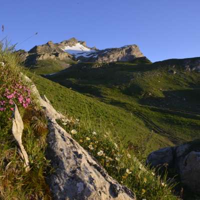 L'area sopra il rifugio Pfälzerhütte, in direzione del monte Naafkopf, offre alla palestra di roccia più alta del Liechtenstein uno scenario molto bello.