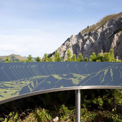 Poiché la tavola panoramica si trova al punto di partenza dell'escursione di più giorni di fama nazionale"Liechtenstein tour dei rifugi «Route 66» e del popolare sentiero «Fürstin Gina», è adatta sia per le passeggiate che per le escursioni.