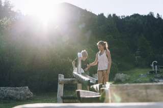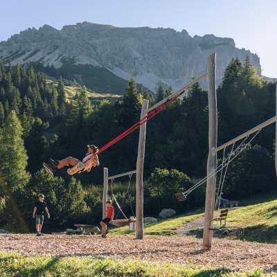 Il parco giochi di Malbun è la preparazione ideale per i primi tentativi di escursione in ambiente alpino da parte dei bambini. Sulla struttura per l'arrampicata e l'equilibrio possono esercitarsi a muovere i primi passi in sicurezza e a coordinare i movimenti. Il morbido pavimento in trucioli di legno è anche in grado di perdonare le piccole scivolate. Stazioni come il percorso dell'acqua e del fango invitano i bambini a giocare liberamente con ruscelli, piscine ecc. all'ombra degli alberi.