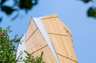 Oltre all'esperienza di svago, anche la sostenibilità è un aspetto fondamentale della torre. Tra le altre cose, c'è la Peter Kaiser Room, aperta a scuole e organizzazioni per workshop ed eventi sui temi dell'ambiente, della sostenibilità e della natura. Con la sua forma curva, la torre si integra architettonicamente con l'ambiente naturale circostante. Anche la sostenibilità ha svolto un ruolo importante nella sua costruzione. La torre è interamente realizzata con legno locale di abete rosso, larice e abete di Douglas.