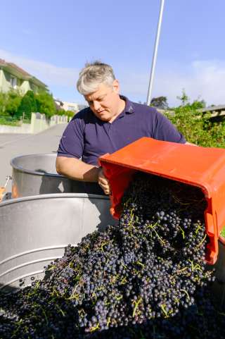 Annette e Arnold Hoop hanno scoperto il loro amore per il vino nel 1988 e hanno affittato il piccolo vigneto "Zur Goldenen Boos" con 450 viti di Pinot Nero e una bella casetta.
