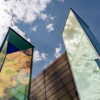 Le sculture in vetro "Light Prisms" riflettono l'intero ambiente circostante, dando luogo a cambiamenti e rifrazioni.